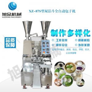 XZ-87S型雙餡斗全自動包子機,可生產各種肉包、肉菜包、菜包、小籠包、湯包、水晶包、圓饅頭、奶黃包、豆沙包、叉燒包、南瓜餅等幾十種包餡制品。適用于賓館、飯店、學校、機關企業食堂、饅頭或包子加工廠、早餐工程店及速凍食品廠等單位??蓾M足不同客戶群體。免費提供工藝技術。免費上門培訓指導安裝。