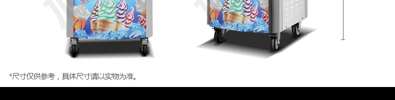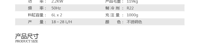 名稱BQL-828H立式冰淇淋機 電源220V 功率2.2kw 產量18-28L/h 尺寸540*590*1360mm 重量119kg 規格 其他