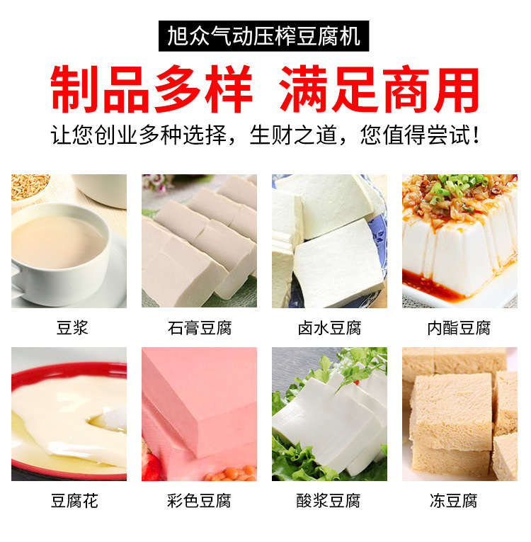 XZ-300型氣動壓榨豆腐機,智能豆腐豆漿機,雙桶煮漿高效生產現磨現煮,漿渣分離快速出漿。機器運行穩定不銹鋼材質打造,堅固耐用,安全衛生,時尚大方,易于清洗。