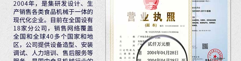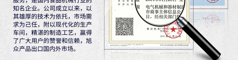 廣州旭眾食品機械有限公司是一家集科研開發,生產設計,營銷服務為一體的現代化生產企業?,F代化生產車間,精湛制造技術,所產機械歷經市場重重考驗,不斷贏得海內外客戶的贊譽。