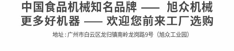 廣州旭眾食品機械有限公司是一家集科研開發,生產設計,營銷服務為一體的現代化生產企業。現代化生產車間,精湛制造技術,所產機械歷經市場重重考驗,不斷贏得海內外客戶的贊譽。