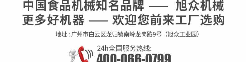 廣州旭眾食品機械有限公司是一家集科研開發(fā),生產(chǎn)設(shè)計,營銷服務(wù)為一體的現(xiàn)代化生產(chǎn)企業(yè)。現(xiàn)代化生產(chǎn)車間,精湛制造技術(shù),所產(chǎn)機械歷經(jīng)市場重重考驗,不斷贏得海內(nèi)外客戶的贊譽。