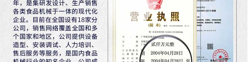 廣州旭眾食品機械有限公司是一家集科研開發,生產設計,營銷服務為一體的現代化生產企業。現代化生產車間,精湛制造技術,所產機械歷經市場重重考驗,不斷贏得海內外客戶的贊譽。