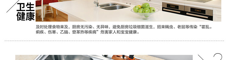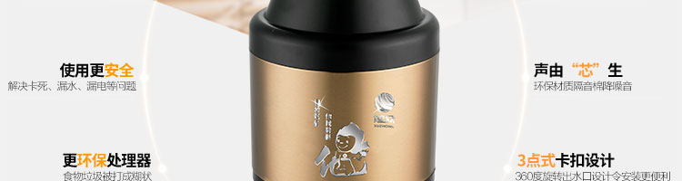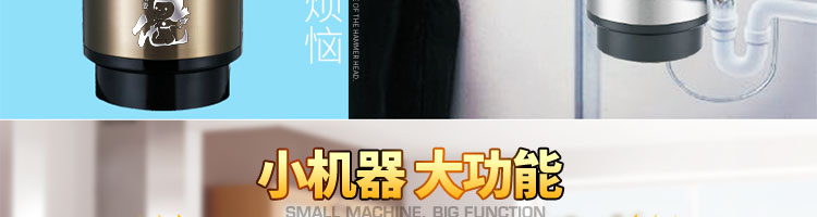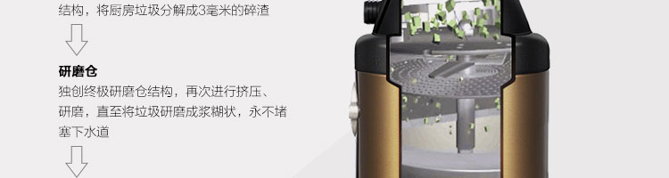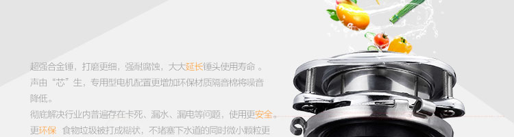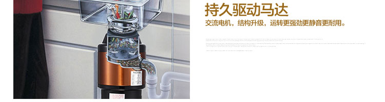 ACLQ56-廚房垃圾處理器,該機(jī)器是靠內(nèi)部結(jié)構(gòu)、零件組合達(dá)到處理垃圾的效果,通過碾、壓、擠、磨等系統(tǒng)的處理,在十幾秒內(nèi)安全將食物垃圾處理成小于3毫米的顆粒,隨著水流排入下水道,使用十分安全。
