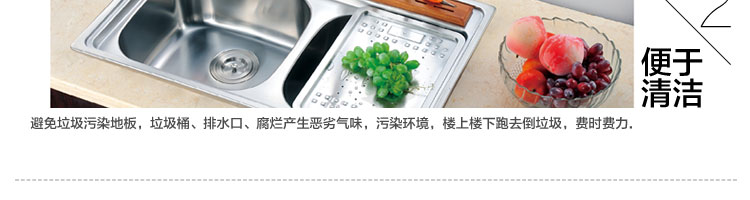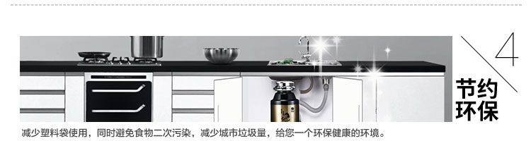 DCLQ38-廚房垃圾處理器,該機(jī)擁有獨(dú)特的粉碎功能,使所有垃圾研磨吸毒真正低于3毫米,用戶不用為管道堵塞而煩惱,粉碎后粗、細(xì)兩種垃圾通過濾孔自動(dòng)分離,成漿狀的細(xì)垃圾隨水流流入管道,粗的垃圾會(huì)稍停留在研磨倉(cāng)繼續(xù)粉碎,形成粉末狀后,再隨水流流入管道,客戶可以放心使用。