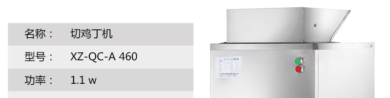 XZ-QC-A460切丁機(jī),切雞丁機(jī)適合將帶軟骨的禽類,如雞、鴨、鵝、鴿、魚類等切成塊(丁)狀。本系列設(shè)備工作效率高,采用不銹鋼制作,美觀耐用,切割快速,少碎骨。
