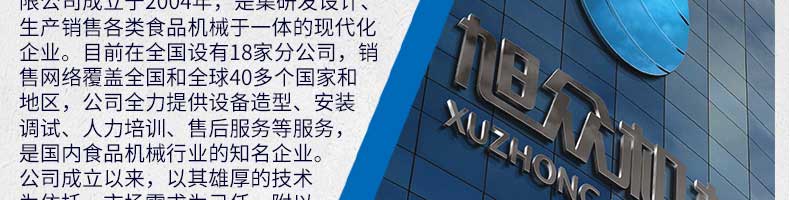 廣州旭眾食品機械有限公司是一家集科研開發,生產設計,營銷服務為一體的現代化生產企業。現代化生產車間,精湛制造技術,所產機械歷經市場重重考驗,不斷贏得海內外客戶的贊譽。