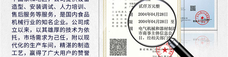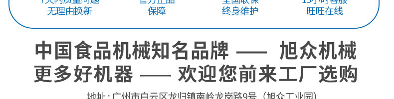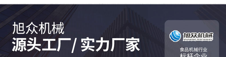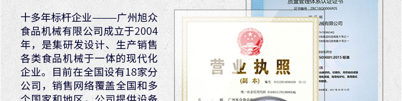 廣州旭眾食品機械有限公司是一家集科研開發(fā),生產(chǎn)設計,營銷服務為一體的現(xiàn)代化生產(chǎn)企業(yè)。現(xiàn)代化生產(chǎn)車間,精湛制造技術(shù),所產(chǎn)機械歷經(jīng)市場重重考驗,不斷贏得海內(nèi)外客戶的贊譽。