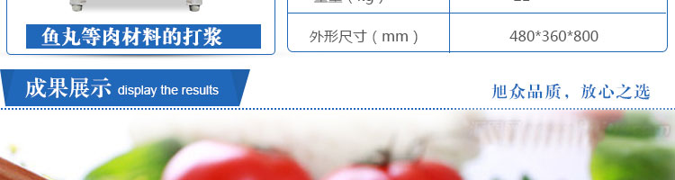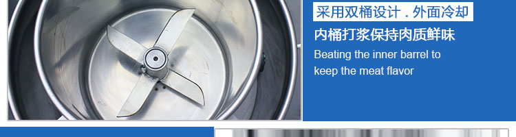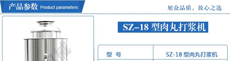 SZ-18型肉丸打漿機,本機裝肉用桶子采用不銹鋼制造,達到衛生要求,肉桶外罩和桶底裝有冷卻裝置,確保肉漿新鮮。比手工的打漿更精細,所產肉丸、魚丸彈性好,色澤潔白。