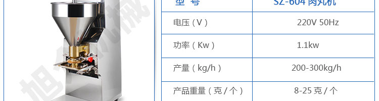 名稱SZ-604肉丸成型機 電源220v 功率1.1kw 產量200-300千克/小時 尺寸600*400*1400mm 重量80kg 規格 其他