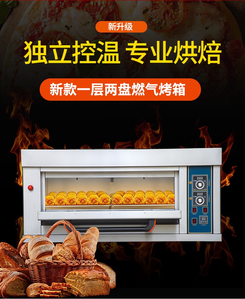 名稱一層兩盤儀表版燃氣烤箱 電源220V 功率0.1KW 產量 尺寸1340*908*660mm 重量130KG 規(guī)格一層兩盤 其他