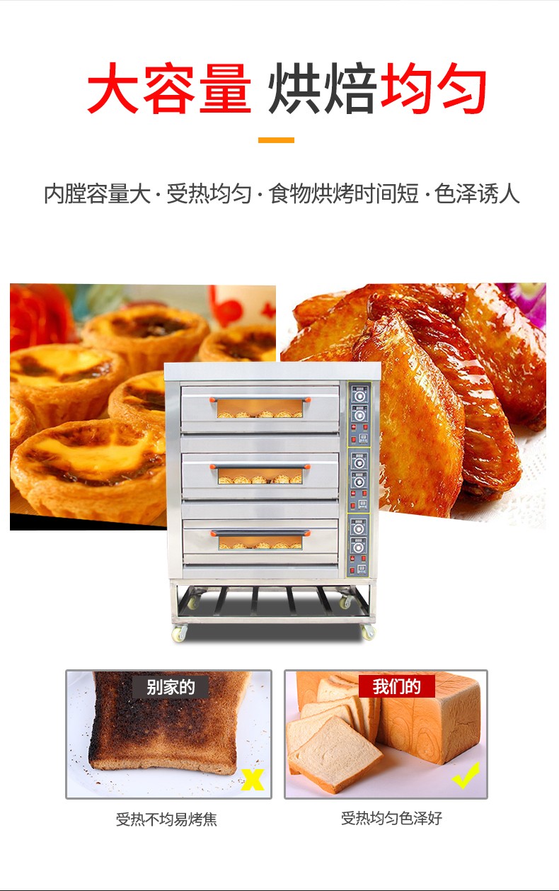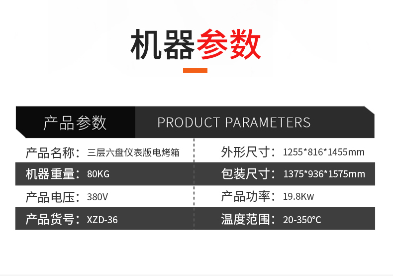 名稱三層六盤儀表版電烤箱 電源380V 功率19.8Kw 產量 尺寸1255*816*1455 mm 重量240KG 規格三層六盤 其他