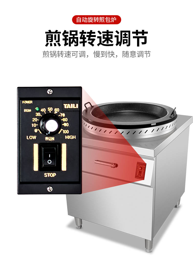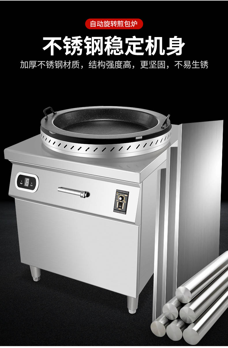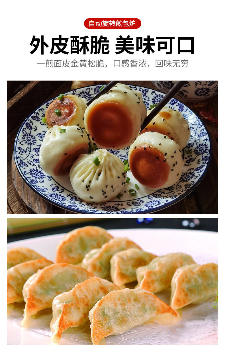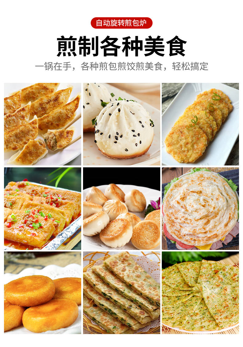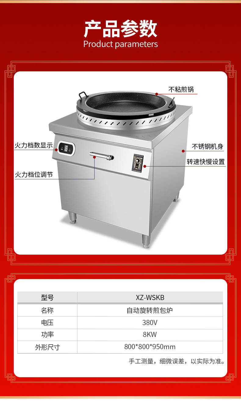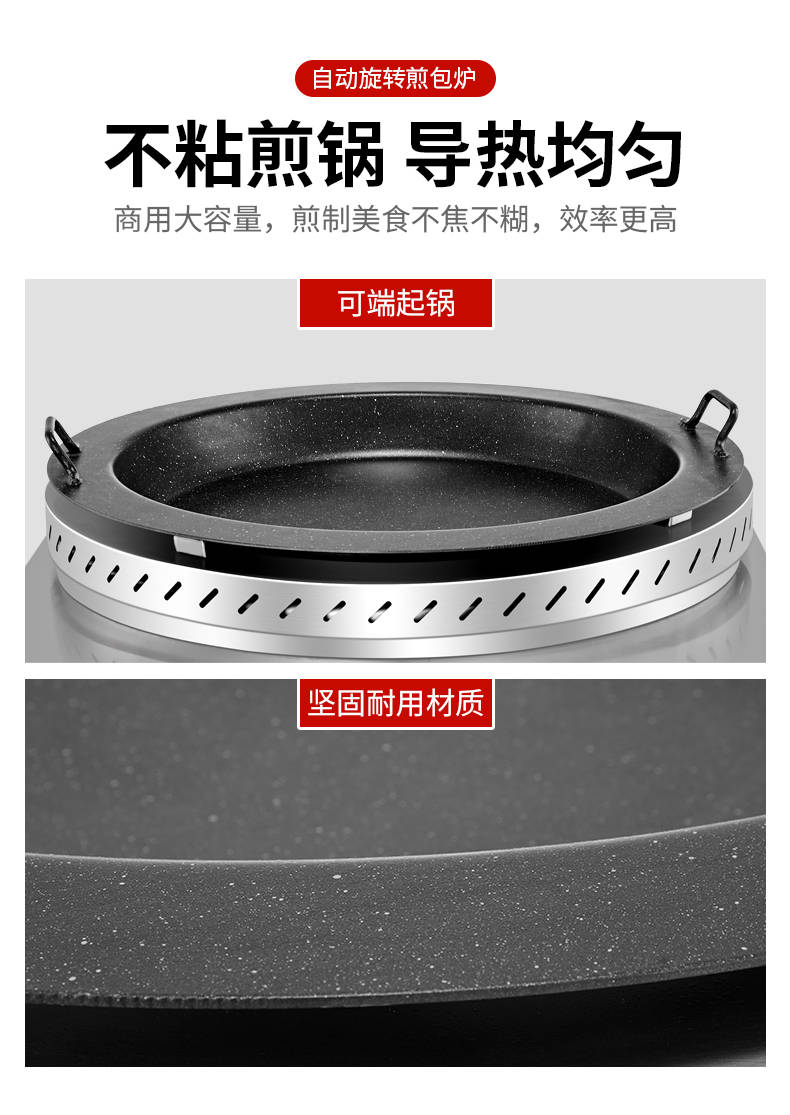 名稱XZ-WSKB自動旋轉煎包爐 電源380V 功率8KW 產量請咨詢銷售員 尺寸800*800*950mm 重量請咨詢銷售員 規格請咨詢銷售員 其他