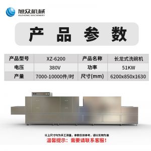 名稱XZ-6200長龍式洗碗機(jī) 電源380v 功率51kw 產(chǎn)量 尺寸6200*850*1630mm可訂制 重量 規(guī)格 其他