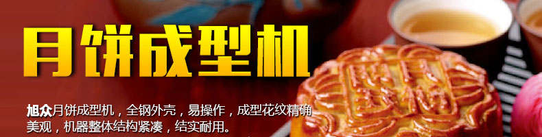 名稱SZ-64月餅自動成型機 電源220V 功率0.4kw 產量40-60個/分鐘 尺寸1760*530*1045mm 重量200kg 規格25-250克/個 其他