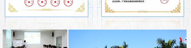 廣州旭眾食品機械有限公司是一家集科研開發,生產設計,營銷服務為一體的現代化生產企業?,F代化生產車間,精湛制造技術,所產機械歷經市場重重考驗,不斷贏得海內外客戶的贊譽。
